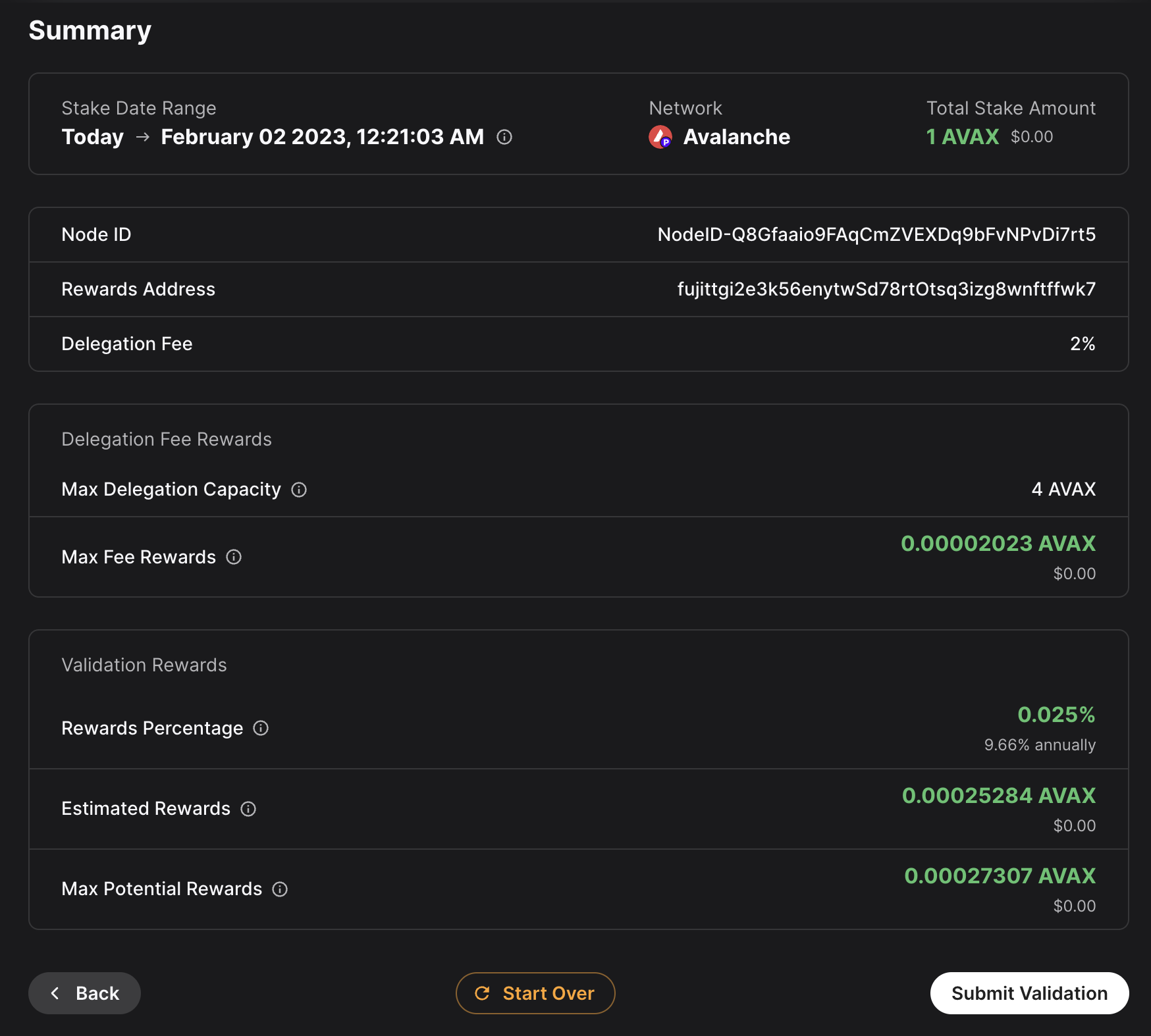``` ## Layout Structure The component uses a flex layout with: - Left side: TokenChip (icon, name, and symbol) - Right side (if balance provided): - Token balance (3 decimal places) - USD value (currently hardcoded to $0) - Proper spacing and alignment - Optional hover and click interactions # TransactionButton (/docs/builderkit/components/transaction/transaction-button) --- title: TransactionButton description: "A button component that handles blockchain transaction submission with built-in status tracking and notifications." --- # TransactionButton The TransactionButton component handles individual transaction submission with built-in status tracking and notifications. ## Usage ```tsx import { TransactionButton } from '@avalabs/builderkit'; // Basic usage // With callbacks { console.log('Transaction sent at:', timestamp); }} onTransactionConfirmed={(receipt) => { console.log('Transaction confirmed:', receipt); }} /> ``` ## Props | Prop | Type | Default | Description | |------|------|---------|-------------| | `chain_id` | `number` | - | Chain ID for the transaction | | `title` | `string` | - | Transaction title | | `description` | `string` | - | Transaction description | | `data` | `any` | - | Transaction data | | `onTransactionSent` | `(timestamp: number) => void` | - | Called when transaction is sent | | `onTransactionConfirmed` | `(receipt: any) => void` | - | Called when transaction is confirmed | | `className` | `string` | - | Additional CSS classes | ## Features - Automatic wallet connection handling - Network switching support - Transaction status tracking - Toast notifications with explorer links - Loading states and error handling ## Examples ### Basic Transaction ```tsx ``` ### With Custom Styling ```tsx ``` ## Component States 1. **Not Connected** - Shows "Connect Wallet" button - Handles wallet connection 2. **Wrong Network** - Shows "Wrong Network" button - Handles network switching 3. **Ready** - Shows transaction button - Enables transaction submission 4. **Processing** - Shows loading indicator - Tracks transaction status ## Notifications The component provides toast notifications for: - Transaction sent - Transaction confirmed - Transaction failed Each notification includes: - Timestamp - Transaction explorer link - Appropriate styling # TransactionManager (/docs/builderkit/components/transaction/transaction-manager) --- title: TransactionManager description: "A component that orchestrates multiple blockchain transactions in sequence." --- # TransactionManager The TransactionManager component orchestrates multiple blockchain transactions in sequence, handling the flow between steps and providing status tracking. ## Usage ```tsx import { TransactionManager } from '@avalabs/builderkit'; // Basic usage { console.log('Step completed at:', timestamp); }} onTransactionConfirmed={(receipt) => { console.log('All transactions completed:', receipt); }} /> ``` ## Props | Prop | Type | Default | Description | |------|------|---------|-------------| | `chain_id` | `number` | - | Chain ID for the transactions | | `transactions` | `TransactionProps[]` | - | Array of transactions to process | | `onTransactionSent` | `(timestamp: number) => void` | - | Called when a step completes | | `onTransactionConfirmed` | `(receipt: any) => void` | - | Called when all transactions complete | | `className` | `string` | - | Additional CSS classes | ## Features - Sequential transaction execution - Step-by-step progress tracking - Automatic state management - Transaction dependency handling - Consistent error handling - Status notifications for each step ## Examples ### Token Approval and Transfer ```tsx ``` ### Multi-step Protocol Interaction ```tsx ``` ## Transaction Flow 1. **Initialization** - Validates transaction array - Sets up initial state - Prepares first transaction 2. **Step Execution** - Processes current transaction - Waits for confirmation - Updates progress state 3. **Step Transition** - Validates completion - Moves to next transaction - Updates UI state 4. **Completion** - Confirms all steps finished - Triggers completion callback - Resets internal state # Deploy Custom VM (/docs/tooling/avalanche-cli/create-avalanche-nodes/deploy-custom-vm) --- title: Deploy Custom VM description: This page demonstrates how to deploy a custom VM into cloud-based validators using Avalanche-CLI. --- Currently, only Fuji network and Devnets are supported. ALPHA WARNING: This command is currently in experimental mode. Proceed at your own risk. ## Prerequisites Before we begin, you will need to have: - Created a cloud server node as described [here](/docs/tooling/create-avalanche-nodes/run-validators-aws) - Created a Custom VM, as described [here](/docs/virtual-machines). - (Ignore for Devnet) Set up a key to be able to pay for transaction Fees, as described [here](/docs/tooling/create-deploy-avalanche-l1s/deploy-on-fuji-testnet). Currently, only AWS & GCP cloud services are supported. Deploying the VM[​](#deploying-the-vm "Direct link to heading") --------------------------------------------------------------- We will be deploying the [MorpheusVM](https://github.com/ava-labs/hypersdk/tree/main/examples/morpheusvm) example built with the HyperSDK. The following settings will be used: - Repo url: `https://github.com/ava-labs/hypersdk/` - Branch Name: `vryx-poc` - Build Script: `examples/morpheusvm/scripts/build.sh` The CLI needs a public repo url in order to be able to download and install the custom VM on cloud. ### Genesis File[​](#genesis-file "Direct link to heading") The following contents will serve as the chain genesis. They were generated using `morpheus-cli` as shown [here](https://github.com/ava-labs/hypersdk/blob/main/examples/morpheusvm/scripts/run.sh). Save it into a file with path `` (for example `~/morpheusvm_genesis.json`): ```bash { "stateBranchFactor":16, "minBlockGap":1000, "minUnitPrice":[1,1,1,1,1], "maxChunkUnits":[1800000,18446744073709551615,18446744073709551615,184467440737095