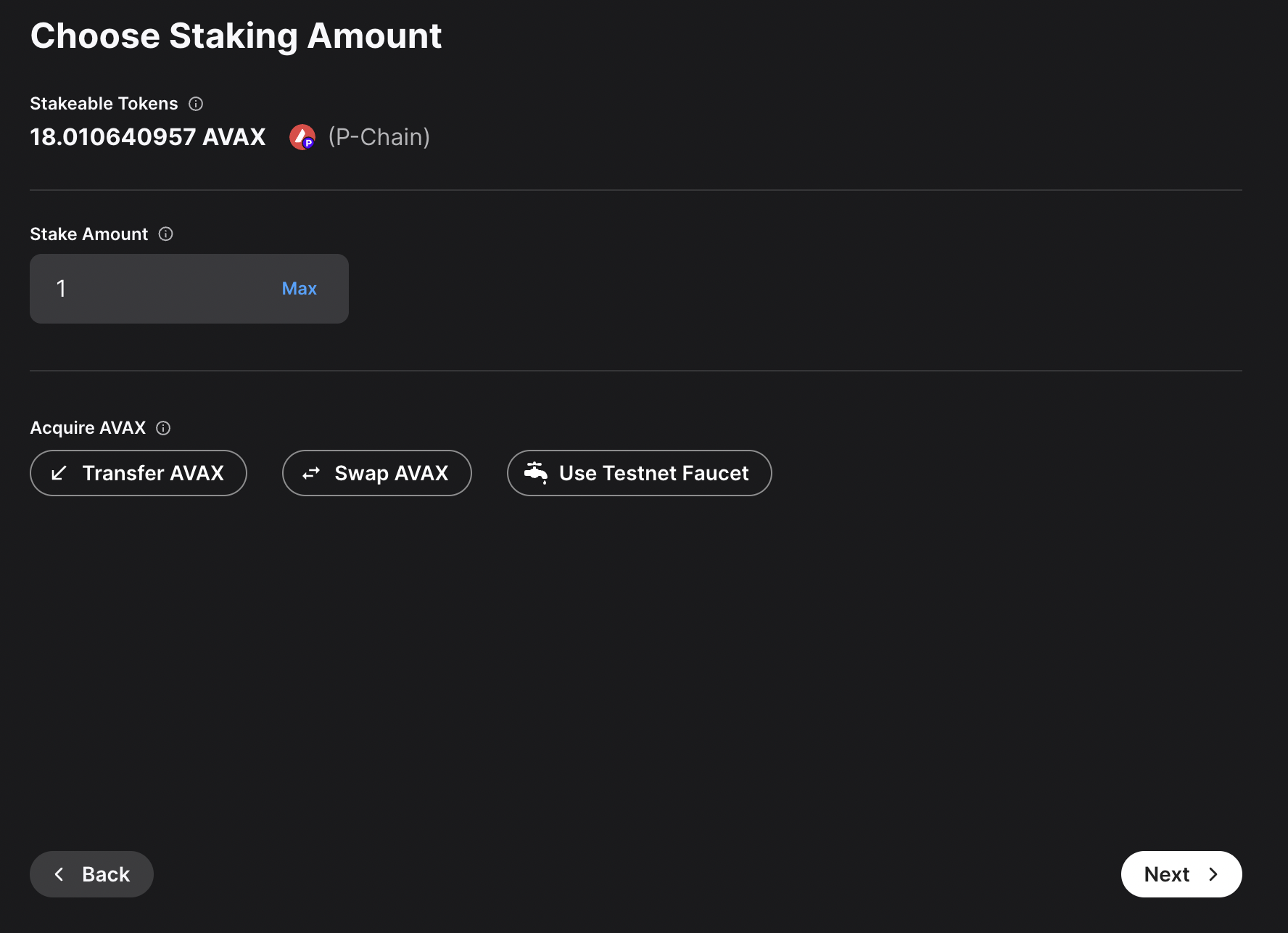 ### Benefits of a Builder Account - **Faucet**: With a Builder Account, you can claim testnet AVAX on the C-Chain and P-Chain right from the Builder Console without the need of a coupon code or holding a mainnet balance. - **Free Managed Testnet Infrastructure**: With a Builder Account, we will provide free managed testnet nodes and ICM relayers for your L1. This infrastructure is not suitable for production use, but it is great for testing and development. # Install Core Wallet (/academy/avalanche-fundamentals/04-creating-an-l1/02-connect-core) --- title: Install Core Wallet description: Learn how to install the Core wallet browser extension and create a wallet. updated: 2025-03-13 authors: [owenwahlgren] icon: Wallet --- In this section you will learn how to set up Core wallet and get some testnet AVAX on the P-Chain so you can launch your first L1. ### Download Core Wallet If you don't have Core Wallet installed already, download the Core Extension for Chrome: [Core Wallet Extension](https://chromewebstore.google.com/detail/core-crypto-wallet-nft-ex/agoakfejjabomempkjlepdflaleeobhb) Core is the only wallet that supports issuing P-Chain transactions, so it is not possible to use other wallets such as MetaMask or Rabby. ### Create a Wallet in Core Create a new wallet in Core by clicking the `Continue with Google` or by manually creating a new Wallet. Congratulations! You have successfully set up your Core wallet. # Claim Testnet Tokens (/academy/avalanche-fundamentals/04-creating-an-l1/02a-claim-testnet-tokens) --- title: Claim Testnet Tokens description: Learn how to connect Core wallet and claim testnet AVAX. updated: 2025-03-13 authors: [owenwahlgren] icon: Coins --- Connect your Core wallet below to claim testnet AVAX on the C-Chain and P-Chain. With a Builder Hub account, **tokens are automatically sent to your wallet** - no manual claims or coupon codes needed! **Automated Faucet:** Once you connect your wallet with a Builder Hub account, testnet tokens are automatically sent to your wallet when needed. You can also manually request tokens using the buttons above. ## Alternative Faucet If you don't want to create a [Builder Hub Account](https://build.avax.network/login), you can use the external [Avalanche Faucet](https://core.app/tools/testnet-faucet/?subnet=c&token=c) with coupon code `avalanche-academy` or `avalanche-academy25` to get 2 AVAX on the C-Chain. After you have claimed some AVAX on the C-Chain, you can bridge it to the P-Chain using this tool: # Network Architecture (/academy/avalanche-fundamentals/04-creating-an-l1/03-network-architecture) --- title: Network Architecture description: Learn about the network architecture of Avalanche and the role of the P-Chain. updated: 2025-03-13 authors: [owenwahlgren] icon: BookOpen --- To create an L1 you need to follow these steps: 1. Create a Subnet record on the P-Chain with the `CreateSubnet` transaction 2. Add one or more chains to the Subnet with the `CreateChain` transaction 3. Convert the Subnet to an L1 and add the initial validators with the `ConvertSubnetToL1` transaction Let's dive into what that means: ## Validators in a Multi-Chain Network Validators are nodes of a blockchain that secure the network by validating the transactions. Each L1 in the Avalanche network has it's own set of validators that is running the `AvalancheGo` client. L1 Creation ## Platform Chain The Platform Chain is the backbone for the native interoperability of the Avalanche network. It is a registry of all validators in the Avalanche network. This includes the validators of the Primary Network (including the C- and P-Chain), as well as all L1s and legacy Subnet validators. For each validator the P-Chain stores the following information: - A unique node ID identifying the validator - A BLS Public Key - The Stake Weight - The Balance of the Validator for the continous interoperability fee following graphic shows a simplified data model of the P-Chain: P-Chain Architecture Builders can create new L1 blockchains in the Avalanche Network by issuing transactions on the P-Chain. The P-Chain runs a special-purpose virtual machine called the [platformvm](https://github.com/ava-labs/avalanchego/tree/master/vms/platformvm). It is not EVM-based and therefore to interact with it you need a compatible wallet like Core wallet. Creating new records for L1 blockchains on the P-Chain is done by issuing transactions like the `CreateSubnetTx`. The P-Chain is secured by the Primary Network validators. L1 validators are syncing the P-Chain, meaning they always have the latest view of the validator set of all blockchains in the Avalanche network, but are not participating in the consensus of the P-Chain. ## Subnets When the Avalanche network was created the architecture included the concepts of Subnets. Subnets are blockchains that were validated by a *subset of the Primary Network validators*. Each Primary Network validator can be a member of multiple subnets, and each Subnet can have multiple validators. Since Primary network validators have to fullfil the Primary Network staking requirements of `2,000 AVAX`, this was also necessary for every validator that was validating a Subnet. There was no option to opt-out of validating the Primary Network. Primary Network
